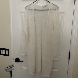 Long sleeve lightweight white sweater duster. 39” long. Size medium. SADIE & SAGE. Great for a cool summer night. Hardly worn. No stains or odors. Reputable seller, fast shipper.