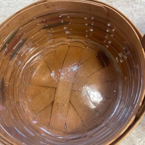 Longaberger 1995 set of two Handcrafted round and Square Woven baskets .