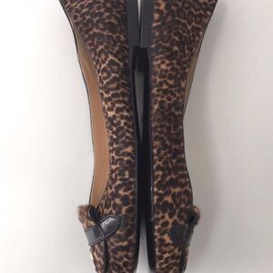 Longchamp Womens Le Pliage Cuir Ballerina Flats Leopard Animal Brown Black Size 35