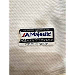 Labels/Markings: Woven patch at hem reads "Engineered exclusively for Majestic Major League Baseball Cool Base"; Majestic "M" logo on sleeve; MLB batterman logo at back neck