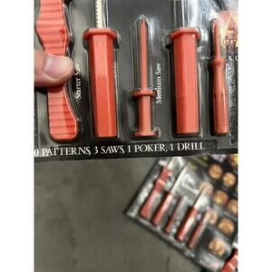 This lot of three vintage 2001 Pumpkin Masters Halloween carving kits is perfect for any crafty individual looking to create unique and spooky decorations for their home. Each kit includes 10 patterns to choose from, all of which are perfect for carving into your favorite gourds.