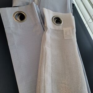 Lot Of 4 Panels Mainstays 84" Sheer Arctic White & Blue Shell - Grommet rings