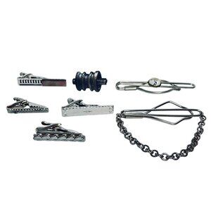 This collection of vintage silver tone tie bars exudes classic elegance from a bygone era. Each unique piece showcases intricate designs and craftsmanship, making them an essential accessory for the discerning gentleman. Ideal for adding a touch of sophistication to formal attire, these tie bars reflect timeless style.
