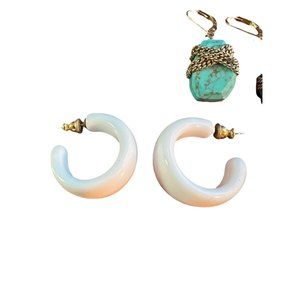Lot of 4 pair Pierced Earrings Faux Turquoise White Acrylic Black Gold Tone