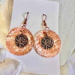 Lotus Flower Copper Earrings, Copper Dangle Earrings, Floral Earrings