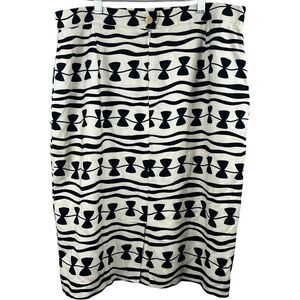 Louis Feraud Vintage Kite String Bow Pencil Skirt 16 Cream Black Linen blend