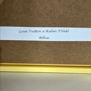 This exquisite Louis Vuitton art piece showcases a breathtaking cityscape if Bilboa in rich blue and gold hues by Ruben Toledo. The panoramic print is elegantly framed, making it a sophisticated addition to any art collection. Its contemporary design and luxurious brand presence elevate the ambiance of any room. This framed postcard comes with an expert authentication from ProAuthenticators.