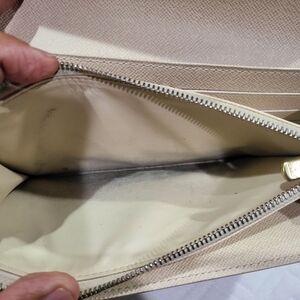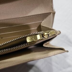 Clean wallet, made in Spain 2010, some coins residues on inside coins pocket, zipper works fine, hardware is clean, authentic, stamp and date code on pictures.... Elegant and stylish, this Louis Vuitton wallet features a classic checkered design in beige. Perfect for any occasion.