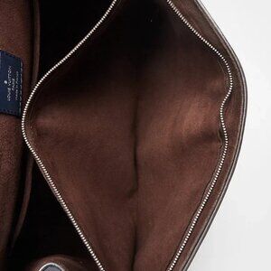 The exterior leather is clean and beautiful throughout with light creasing to the bottom corners and base. The smooth leather sides show minor creasing and a few scratches. The leather top handle has creasing and has softened slightly from gentle use. The base of the top handle has creasing and wear. The glazing on the flap has wear. The hardware remains bright and shiny. The interior lining is clean with light signs of wear. Overall the bag remains in good condition.