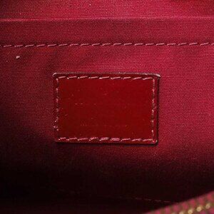 The exterior Vernis is clean and beautiful but has rubbing on the bottom corners as well as minor scratches and light creasing. The handles have moderate rubbing and the strap is heavily creased with some text transfer (refer to photo). The glazing has light wear throughout. The hardware is bright and shiny with some rubbing at the metal feet, fading, and surface scratches. The interior is clean but is faded and has scratches on the lining.