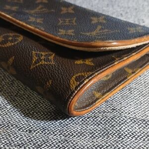 Authenti Louis Vuitton Monogram Pochette GM Shoulder Bag. Classic monogram design. Perfect for any occasion. This bag is beautiful and is in good condition. The bag is made of leather and is in brown. The darker parts look great but thd lighter edges do have wear. The inside also looks good but again with some wear. The measurements are W 9 4 H 4.5 Depth 1.0. The straps look good and are 19.7 inches long. This bag is super super cute please let me know if you have any questions