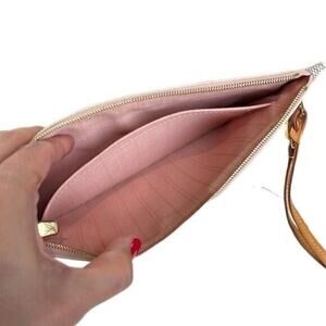 The Louis Vuitton Pochette Damier Azur with Rose Ballerine Lining is a stylish and versatile accessory that is perfect for any occasion. Made from high-quality materials, this pochette features the iconic Damier Azur pattern that is both timeless and elegant. The pink lining adds a touch of sophistication to the overall design, making it a must-have for fashion-conscious individuals. The pochette is available in two sizes, MM and GM, to suit different preferences. The MM size measures 9.1 x 5.1 x 1.6 inches. Both sizes are spacious enough to hold all your essentials, including your phone, wallet, and keys. The Louis Vuitton Pochette Damier is priced right, making it an affordable luxury item that is worth investing in. The pochette is perfect for everyday use, as well as special occasions, and is sure to turn heads wherever you go. Something we love about the Louis Vuitton Pochette is its versatility. It can be dressed up or down, making it a great addition to any wardrobe. Our experts think the standout feature of the Louis Vuitton Pochette Damier Azur is its timeless design, which will never go out of style. Overall, we love the Louis Vuitton Pochette Damier Azur for its quality, style, and affordability.