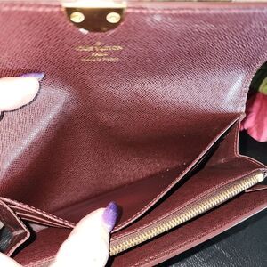 Beautiful, Authentic Louis Vuitton wallet Maroon leather and gold tone hardware. Unbranded conversion chain and charm. Comes with dust bag.
