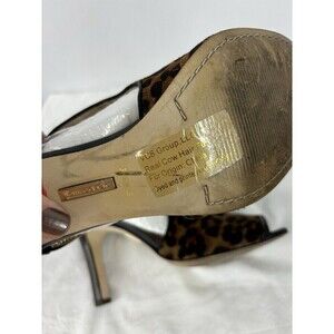 Louise et Cie Peeptoe Booties Heels Leopard Animal Print Brown Black 8.5 B Calf Hair Buckle