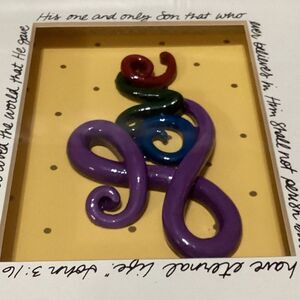 Picture has Love on the inside and on the matt reads: “For God so loved the world that he gave his one and only son that who ever believes in him shall not perish but have eternal life” John 3:16