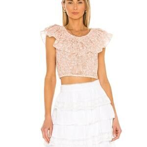 Love Shack Fancy Pink Floral Ruffle Dorin Cotton Crop Top Womens Small