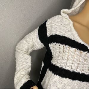 Love Tree Happens Striped Crochet Hooded Sweater Black Cream Size medium
