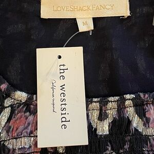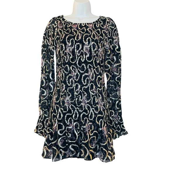 LoveShackFancy Scarlett Chiffon Geometric Mini Dress Navy Cosmo Print Size M