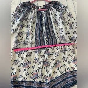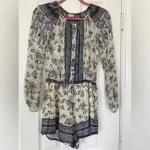 Super cute romper with adjustable tie in the waist, it’s a size small but could easily fit a medium. The measurement shown on the picture is with the full stretch, it could be made smaller.