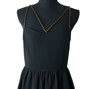 Lovemarks Black Polyester Dress Rhinestone Studded Straps Dress Medium