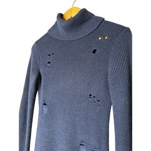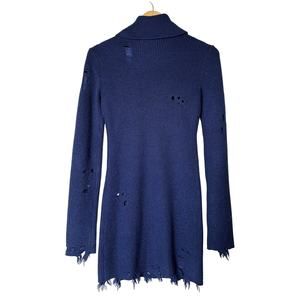 Lovers & Friends Dress Keeney Distressed Wool Blend Long Sleeve High Neck Sz XS
