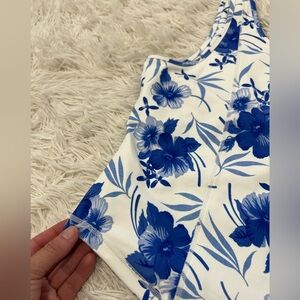 LoveshackFancy Indigrina Peplum-Hem Tank Top - Size XL - Strong Current print white/blue - pre owned - great condition