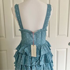 Loveshackfancy Idra Cotton Polka Dot Maxi Dress Blue Bonnet Size 8 MSRP $625