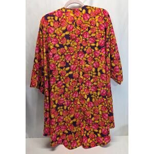 LuLaRoe LLR Pink Rose, Gold Leaf & Dark Purple Lindsay Women's Kimono Size Large