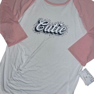 LuLaRoe Women’s XL Randy White & Pink Baseball Tee Raglan Mid-Length Sleeves