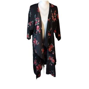 This New with tags black with florals LuLaRoe open front kimono is a size Large with a pit to pit measuring 23" and a length of 42". All offers are welcome.