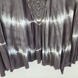 Gently used waterfall front cardigan by Lucie Lu in size 1x.  Brown and white tie dye print