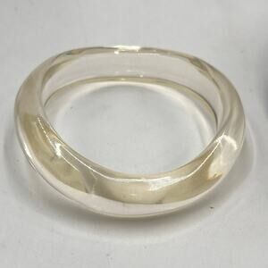 Chunky Bangle Bracelet. Featuring a sleek and minimalist design, this bangle is crafted from Lucite, giving it a unique and contemporary look. Perfect for adding a touch of vintage charm to any outfit, this bold accessory is a must-have for collectors and fashion enthusiasts alike.