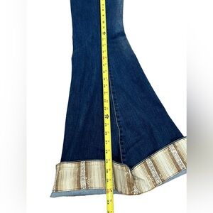 Lucky & Blessed Women’s Brown Aztec Print Cuffed Dark Wash Denim Flare Jeans