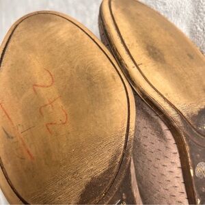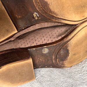 Good used condition. Baley Suede Bootie by Lucky Brand in Light Brown, a neutral tan shade. Minimalist western festival aesthetic, great to pair with denim or skirts. Ankle boot with deep side cut and low stacked heel. Perforated soft leather upper, see video. Note: light wear throughout, with streetwear, sticker residue and marker to bottom sole, fading to heel and outsoles, and moderate scuffs/discoloration at upper, see photos. Size 9, see photos for measurements.