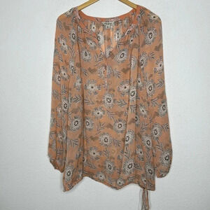 Lucky Brand Riviera Silk Floral Peasant blouse plus size 3X
