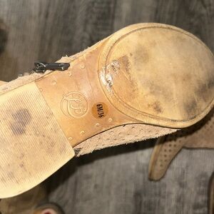 Lucky Brand Women's 6 boots Basel 3 Perforated Leather Tan Ankle zippers good condition pre owned