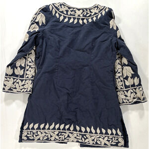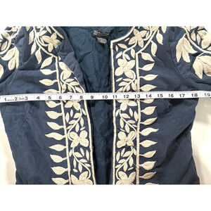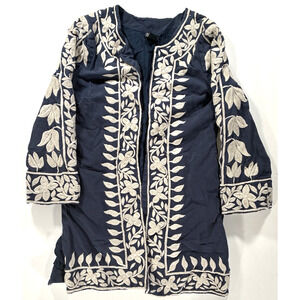 Lucky Brand Womens Size Small Blue Floral Top Tunic Jacket Embroidered Lined