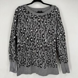 Lucky Brand Leopard Cheetah Print Gray Pullover Sweater Size 1X