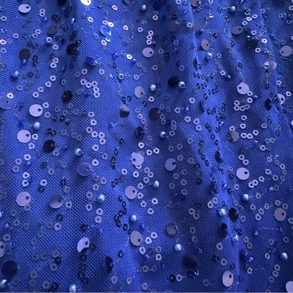 Dazzling royal blue dress with sequins. Tie back and lining with slits in legs. Perfect for celebrations, prom, winter formal, bridesmaid!