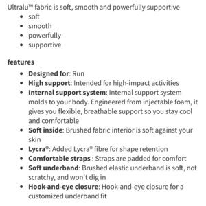 Next level everything. This running bra has a flexible, lightweight internal structure that controls all the ways your boobs move. It slows down movement that's annoying at best and painful at worst, providing your boobs with a soft landing. Hook-and-eye closure for a customized underband fit. Internal support system molds to your body. Engineered from injectable foam, it gives you flexible, breathable support so you stay cool and comfortable. Added Lycra fibre for shape retention. Good preloved condition. Size 36D