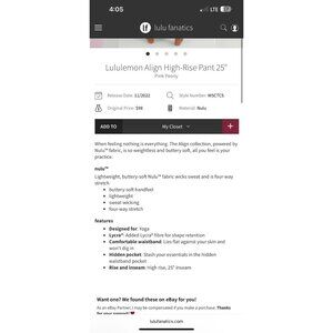 Lululemon Align High-Rise Pant 25” , pink peony, Size 6 J196