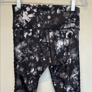 Lululemon Athletica Sunshine Salutation Crop Leggings in Dusk Dye White Black 6