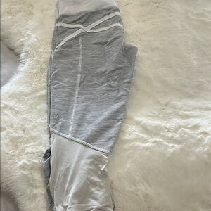 Lululemon cropped and ruched gray and white striped leggings. Perfect for everyday wear. Slight imperfection on the posterior left leg. See photos for details. Size 4.