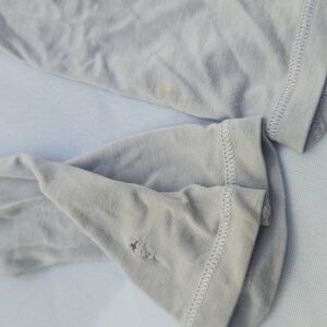 Elevate your wardrobe with this stylish light gray women's top. Perfect for any occasion, this top offers both comfort and elegance. please see pictures light stains and small hole on the Sleve