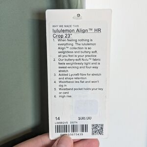 Lululemon NWT Align High Rise Leggings 23" Crop - Desert Green sz 14