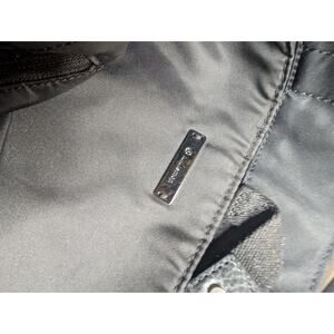 The Lululemon Now and Always Tote Bag is a stylish and practical accessory for women. Featuring a sleek black and gray camouflage pattern, this tote bag is both functional and fashionable. The gray handles, hardware, and lining add a touch of sophistication to the overall design. Made from durable nylon material, this 15L tote bag is perfect for carrying your everyday essentials in style.