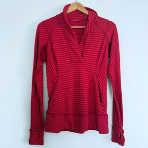 Lululemon Think Fast Pullover Double Trouble Stripe Deepest Cranberry Size: 8