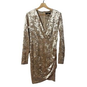 Lulu's Champagne Velvet Long Sleeve Mini Dress L