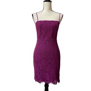 Lulus Keep It Social Magenta Lace Bodycon Mini Dress Sz. Small