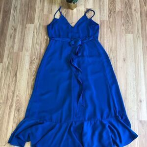 Lulus Manhattan Moment Ruffled Midi Wrap Dress Size XS Blue Straps Sleeveless